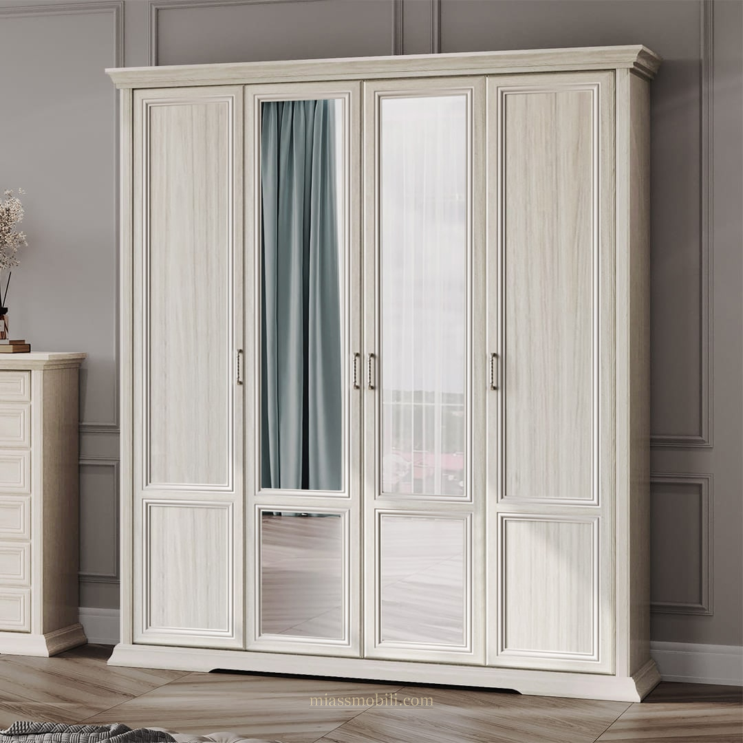 Шкаф 4-х дв. Lorenzo дуб сторсанд для платья и белья с зеркалами Lorenzo дуб Сторсанд купить в Самаре