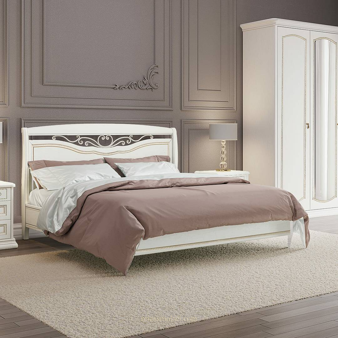 Кровать двойная (1800x2000) Luigi цвет белый с кованым элементом без ножной спинки Кровати купить в Самаре