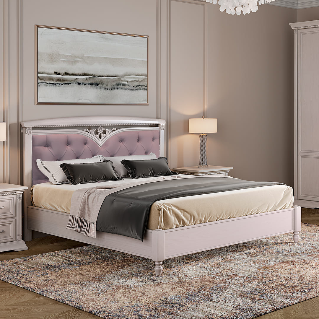 Кровать двойная Lorenzo пудра с мягкой головной и без ножной спинки Lorenzo пудра купить в Самаре