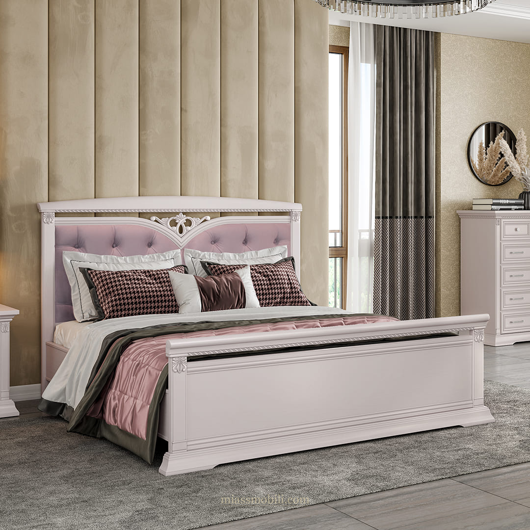 Кровать двойная Lorenzo пудра с мягкой головной и ножной спинкой Lorenzo пудра купить в Самаре