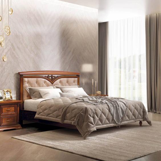 Кровать двойная Lorenzo вишня с кутаной головной и без ножной спинки Кровати купить в Самаре